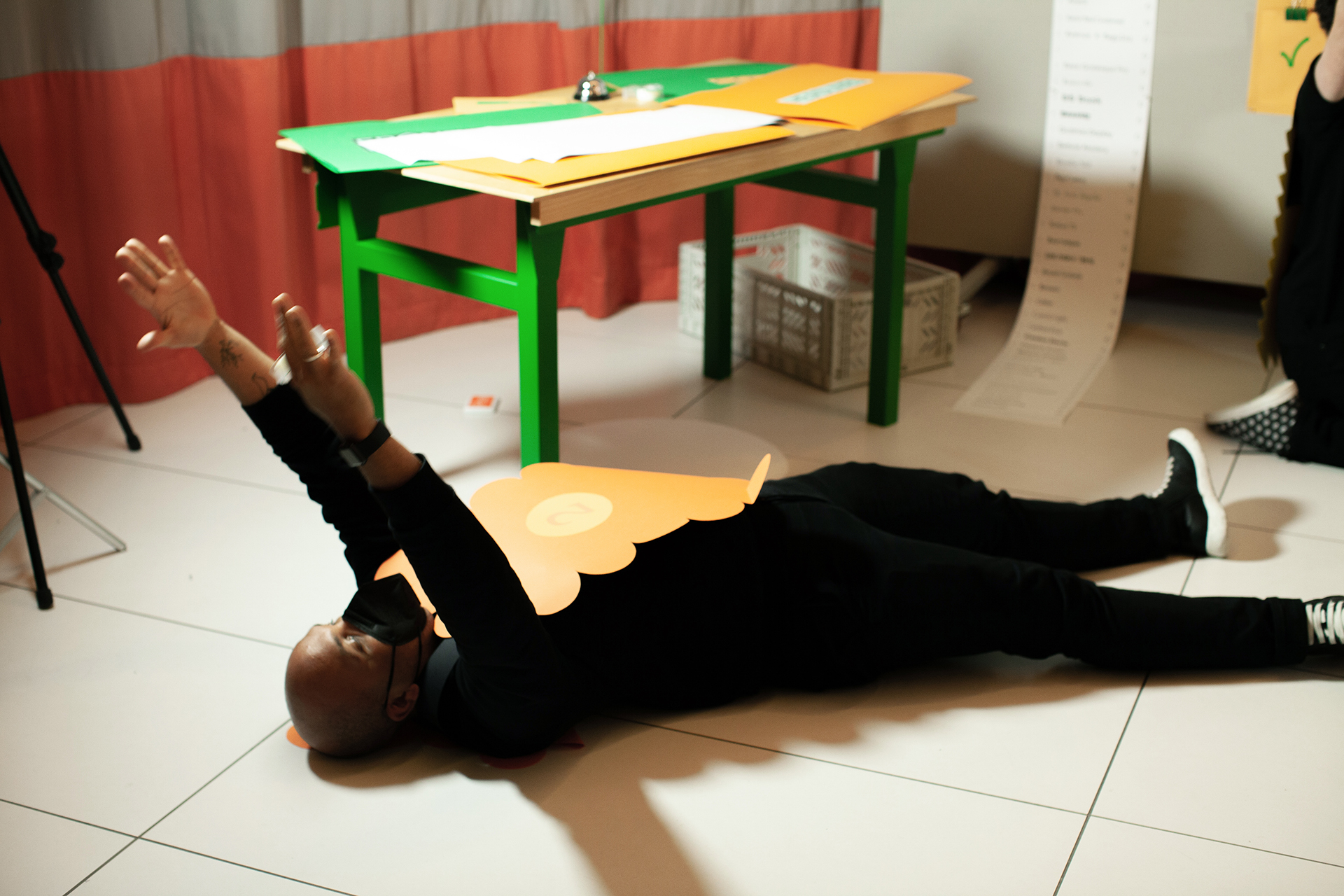 During this 20-minute performance, participants were tasked with typesetting Frederick Taylor’s 1911, The Principles of Scientific Management. Participants were given instructions read out to them by an AI voice-over. Each was assigned a specific role and given precise instructions on when and how to perform each tasks from font installation to file setup and layout. Staged as an XL analog translation of the experience of working under impossible deadlines with glitchy design software, this work took inspiration from Fluxus performance scores and was designed to exaggerate the participants’ movements one stage.